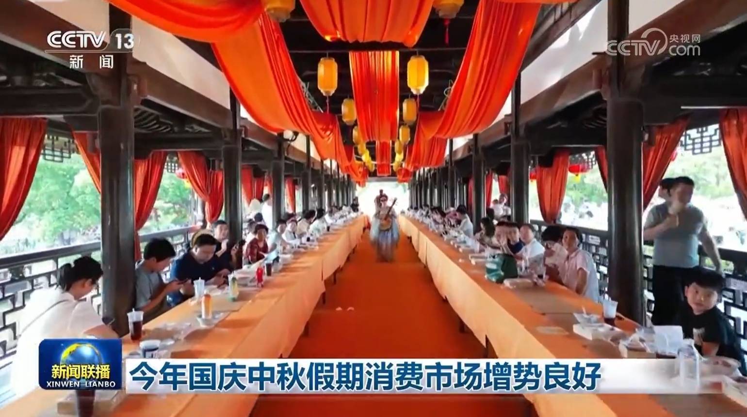 央视网消息(新闻联播):国家税务总局数据显示,今年国庆中秋假期,消费市场增势较好。全国消费相关行业日均销售收入同比增长4.5%,其中商品消费和服务消费同比分别增长3.9%和7.6%。食品、日用品类商品消费保持较快增长;手机等通讯器材销售收入同比增长18.8%;汽车销售收入同比增长12.6%,其中新能源汽车同比增长14.7%。